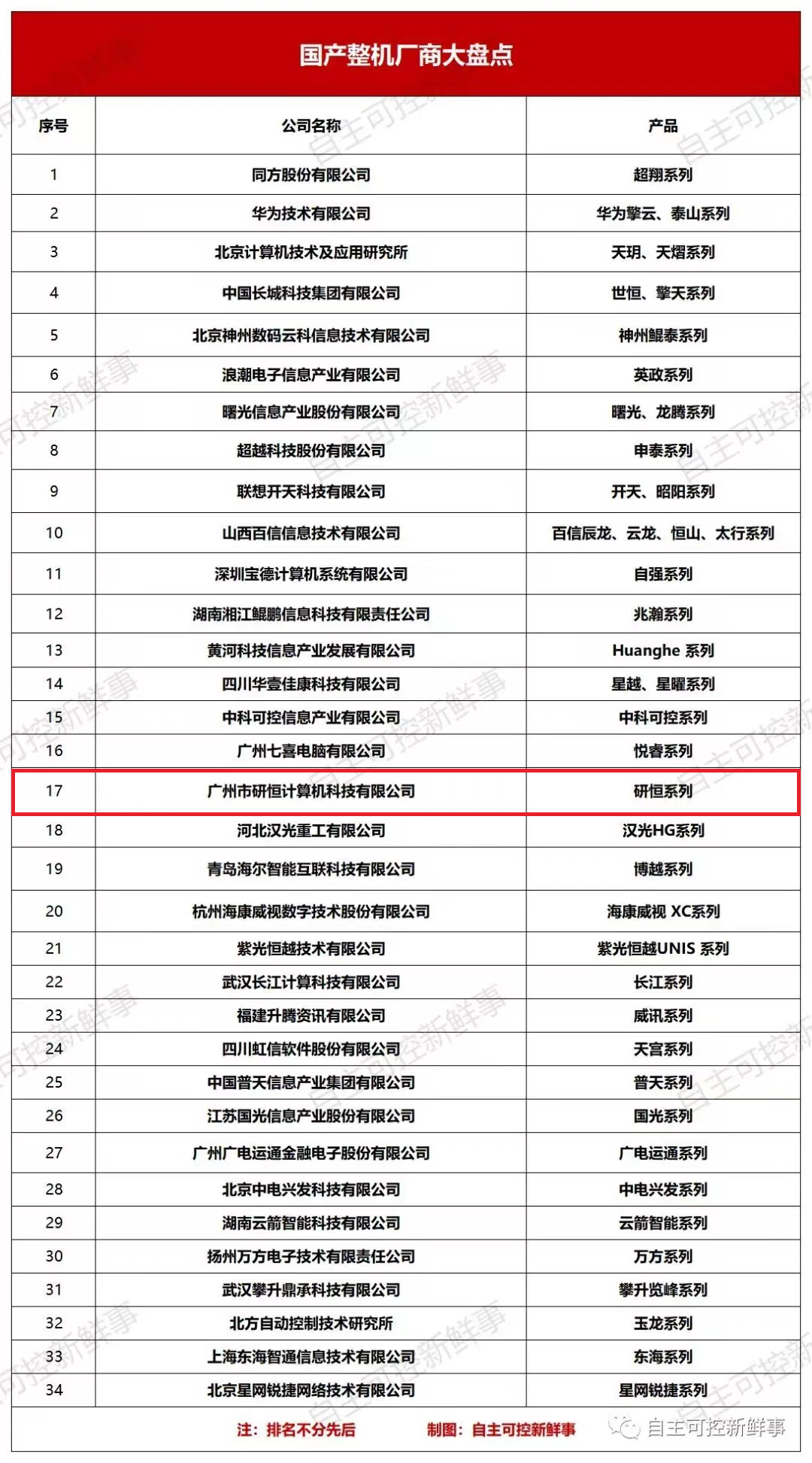 在本次項目中,廣州研恒作為工控行業(yè)第一家進入國家信創(chuàng)名錄的企業(yè),與華為技術(shù)有限公司、聯(lián)想開天科技有限公司、寶德計算機系統(tǒng)股份有限公司、浪潮電子信息產(chǎn)業(yè)股份有限公司等21家國內(nèi)頭部企業(yè)一起參與了報價競標(biāo)。