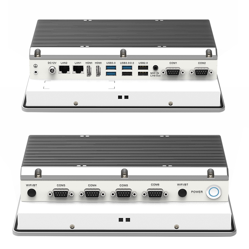 低功耗:英特爾® 賽揚(yáng)® J6412 板載處理器,TDP 10W外觀設(shè)計(jì):鋁合金一體成型,工藝精細(xì),科技時(shí)尚穩(wěn)定可靠:純工業(yè)無(wú)風(fēng)扇設(shè)計(jì),大面積鋁鰭散熱,箱體材質(zhì)可抗接觸式6Kv強(qiáng)電磁干擾;液晶屏接觸處加強(qiáng)型密封膠圈設(shè)計(jì),面板防水防撞擊人機(jī)界面友好:純屏10點(diǎn)工規(guī)電容觸控,操作更便利接口豐富:2*LAN(Intel),6*COM,3*USB3.0,3*USB2.0,2*HDMI,1*M.2(KEY-M,2280,支持PCIE x2信號(hào) NVME SDD),1*Mini PCIE(全高,PCIE+USB信號(hào),支持WIFI/BT)