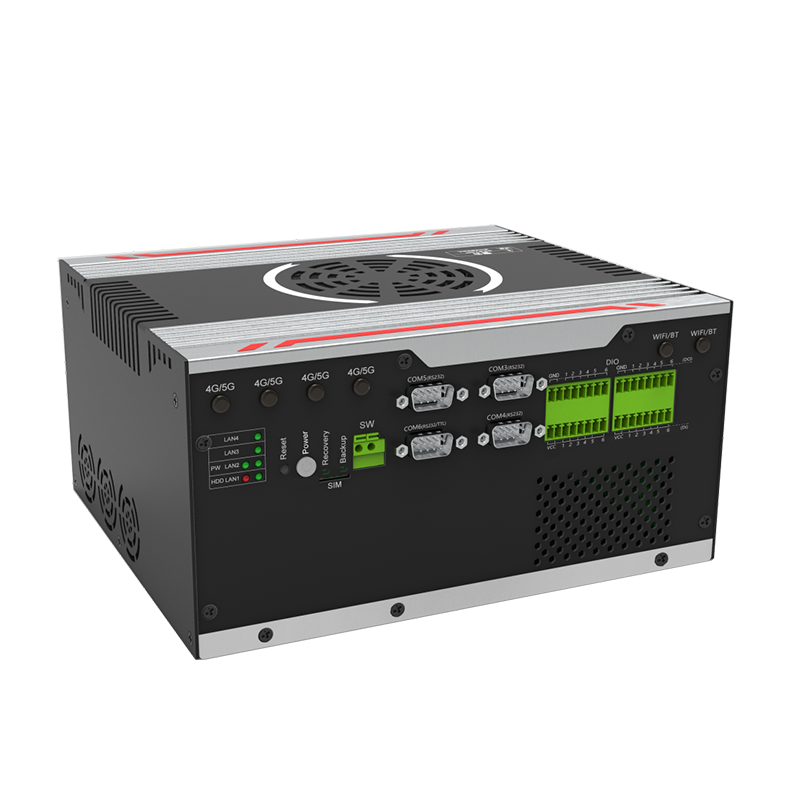與豎向等多種放置的自然對流散熱,機(jī)箱可抗接觸式6KV強(qiáng)電磁干擾,DC12V-24V寬壓輸入接口豐富:4*LAN(Intel),6*COM,24*GPIO(12*GPI,12*GPO,帶隔離)10*USB,1*VGA,1*HDMI,1*遠(yuǎn)