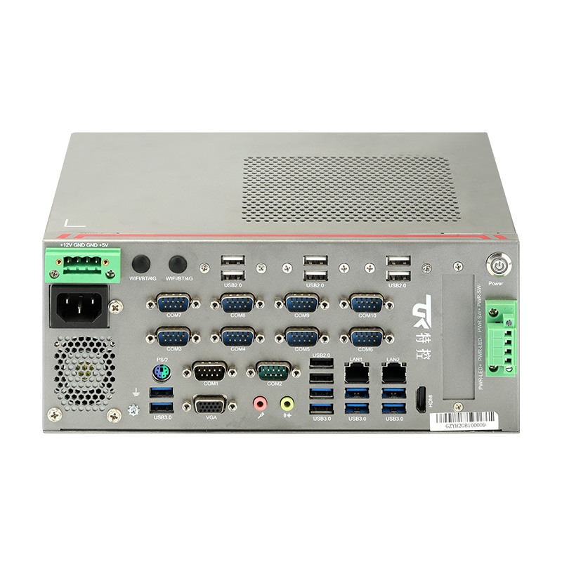 - 1* VGA</ br>1* HDMI</ br>2*LAN</ br>12*COM(COM3可選RS232/485)</ br>8*USB3.0,8*USB2.0</ br>1*PS/2</ br>1*MIC in,1* Line out</ br>2*天線孔(默認(rèn)不裝配,與WiFi為功能套件,選配即裝)</ br>1*帶燈開關(guān)按鈕</ br>1*SIM插槽</ br>1*4PIN 遠(yuǎn)程開關(guān)</ br>1*4PIN 鳳凰端子供電(+12V/+5V)